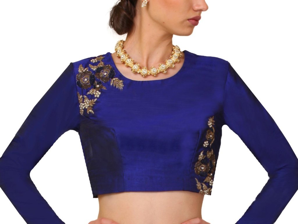 High neck wedding blouse designs give a perfect look of ethnicity mixed with modern. They are quite in trend these days and a must wear in winter as they cover your shoulders and neck. With high neck blouses, you can either pair them with no necklace or a necklace that is tight on the neck in case your blouse has no collar. High neck blouses come in varying sleeve lengths which you can choose according to your preference.
