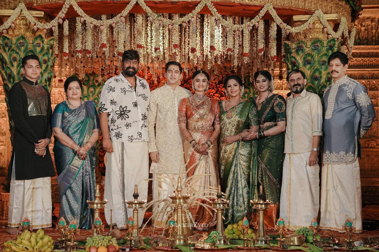 Asha Sarath came to the wedding wearing a green saree. Uthara can be seen in a red saree. Pictures of Asha Sarath welcoming Utharey and Aditya to the wedding venue are going viral on social media.